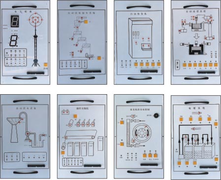 配合 PLC 可編程控制器實(shí)驗(yàn)臺使用而設(shè)計的外接演示裝置。它由 LED 發(fā)光二極管、大型 LED 數(shù)碼管、直流電機(jī)、步進(jìn)電機(jī)等執(zhí)行機(jī)構(gòu)用其他外圍電路模擬實(shí)際工業(yè)控制過程中的狀態(tài),它形象生動的演示了 PLC 的整個執(zhí)行過程。通過該裝置,可以鍛煉學(xué)生的動手能力,能夠形象生動的執(zhí)行機(jī)構(gòu)驗(yàn)證自己編寫程序的正確性,掌握 PLC 的實(shí)際應(yīng)用,增強(qiáng)學(xué)生對 PLC 的學(xué)習(xí)興趣。該裝置在演示屏上位置可任意移動、互換。