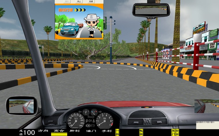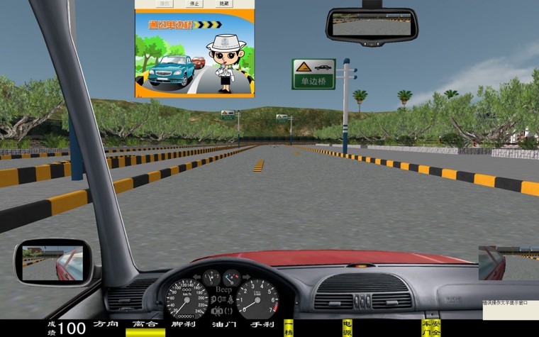 華育寬頻 HYM-9 型汽車駕駛模擬器是一種 80 度視角配 22 寸液晶彩顯的多功能新一代的主被動(dòng)式汽車駕駛模擬器。它突破了原來在行駛十字路口向左拐的視線盲區(qū),行起車來更加方便逼真, 從而清楚的觀察車輛與路面的位置關(guān)系。是目前市場上絕對(duì)最新版的汽車駕駛模擬器軟件。 一、界面顯示 新增加 有: 轉(zhuǎn)向、 油門、 剎車、 離合器深淺進(jìn)度; 檔位、 訓(xùn)練成績, 后視鏡(左、右、中)、 場景地圖顯示; 界面儀表盤上顯示有: 車速表、 發(fā)動(dòng)機(jī)轉(zhuǎn)速表、 大燈、(遠(yuǎn)光燈、近光燈、視寬燈)、 轉(zhuǎn)向燈、 安全帶提示燈、 車門關(guān)閉提示燈、 機(jī)油燈、 電瓶警告燈等。 在訓(xùn)練過程中、通過雙擊鼠標(biāo)、可實(shí)現(xiàn)正視和俯視圖像駕駛之間切換。 三、本模擬系統(tǒng)界面里不同車型之間自由轉(zhuǎn)換,其車型有: 小轎車、 吉普車、 無級(jí)變速車(自動(dòng)檔)、 農(nóng)用車、 大貨車、 大客車、 (車型等多達(dá)六種學(xué)員可以在模擬器上體會(huì)不同車型的駕駛體會(huì)與樂趣) 四、學(xué)員可以根據(jù)自己駕駛的熟練程度選項(xiàng)訓(xùn)練,分三級(jí)訓(xùn)練,即 1 、初級(jí)駕駛; 2 、中級(jí)駕駛; 3 、高級(jí)駕駛訓(xùn)練: 初級(jí)駕駛訓(xùn)練 :初級(jí)駕駛可分為六種車型和三種練習(xí)方法,即 1 、被動(dòng)駕駛; 2 、原地訓(xùn)練; 3 、簡易道路等訓(xùn)練 中級(jí)駕駛訓(xùn)練 :可選擇場景內(nèi)的相應(yīng)功能訓(xùn)練:車輛的數(shù)量、車型、道路、天氣等。 高級(jí)駕駛訓(xùn)練 :可選車輛的數(shù)量、車型、道路、天氣及 交通部規(guī)定的九項(xiàng)專項(xiàng)訓(xùn)練 即: 1 通過連續(xù)障礙、 2 通過單邊橋、 3 直角轉(zhuǎn)彎、 4 側(cè)方位停車、 5 上坡定點(diǎn)停車與坡道起步、 6 限速通過限寬門、 7 百米 加減檔、 8 起伏路駕駛、 9 曲線行駛等 。場景內(nèi)最多可達(dá) 60 輛其他車輛,達(dá)到模擬逼真的交通流狀況。 訓(xùn)練氣候 面有:“