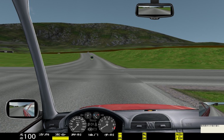 炫目訓(xùn)練” “白天”、“雪天”、“霧天”、“雨天”、“黑夜”,體會(huì)不同天氣狀況下的駕駛特點(diǎn)(例如,晴天炫目道路訓(xùn)練有早上及傍晚的炫目駕駛;雪天路面極滑;霧天視線極其不好;夜間駕駛會(huì)車時(shí)要遠(yuǎn)近燈光的切換等)。 學(xué)生駕駛艙 座機(jī)由駕駛座、視屏彩電、汽車五大操作系統(tǒng)、核心計(jì)算機(jī)、高級(jí)進(jìn)口傳感器、數(shù)據(jù)采集板等組成,各操作部件通過傳感器,經(jīng)數(shù)據(jù)傳感板傳輸。 駕駛模式 被動(dòng)式:被動(dòng)式駕駛適用于初學(xué)的學(xué)員,學(xué)生可以按照電腦語音提示進(jìn)行規(guī)范的操作練習(xí)。 主動(dòng)式:主動(dòng)式駕駛與實(shí)際車輛相同。 功能 主視屏:顯示駕駛前方道路與周圍路況、使學(xué)生能感覺身在駕駛室操作著運(yùn)行中的汽車。并顯示檔位、成績分?jǐn)?shù)。 后視鏡:能達(dá)到與真車相同的模擬效果。可升降。 模擬儀表:顯示車速、里程、發(fā)動(dòng)機(jī)轉(zhuǎn)速。并且可自行決定關(guān)閉或開啟。 特殊功能:通過鼠標(biāo)操作可由正常駕駛室駕駛模式切換到以府視式駕駛模擬 . 訓(xùn)練場景科目: ⑴ 一般道路; ⑵ 高速公路; ⑶ 城市道路;(包括:行人、自行車、其它車輛、雙黃線、崗?fù)ぁ⒕、紅綠燈、轉(zhuǎn)盤、交通標(biāo)志標(biāo)線等。) ( 4 )炫目道路 ( 5 )泥濘道路 ( 6 ) 山區(qū)道路; ( 7 ) 曲線穿樁、場地倒庫; ( 8 )“ 8 ”字型路; ( 9 ) 直角彎路、十字路口、丁字路口、匝道等。 ( 10 ) 蛇形路; ( 11 ) 就位停車; ( 12 ) 順行停車; ( 13 )雙邊橋; ( 14 )單邊橋; ( 15 )單凸橋; ( 16 )橫斷橋; ( 17 )騎越障礙; ( 18 )立交橋; ( 19 )隧道。 天氣 一般道路可選擇四種天氣:白天、雪天、霧天、雨天、黑夜。 畫面選擇 可以選擇“打開”或“關(guān)閉”:后視鏡、向?qū)У貓D、錯(cuò)誤提示、成績等。 其它車輛選擇 各道路分 4 種數(shù)目選擇: 3 至 60 輛。 車型選擇 在訓(xùn)練中有六種車型:小轎車、吉普車、無級(jí)變速車(自動(dòng)檔)、大貨車、大客車、農(nóng)用車等。 汽車模擬技術(shù) 汽車多自由度數(shù)學(xué)模型,實(shí)現(xiàn)汽車轉(zhuǎn)向、制動(dòng)和加速的逼真模擬。 測試調(diào)整功能 傳感器測試:方向機(jī)的測試、離合器的測試、油門的測試、制動(dòng)器的測試(腳剎)、手制動(dòng)的測試、變速器各檔位的測試、鳴號(hào)、點(diǎn)火、開鎖。只要打開測試界面便一目了然。并可作學(xué)員操作曲線學(xué)仿 第二節(jié) 汽車駕駛模擬器軟件技術(shù)指標(biāo) ● 軟件增加 ※界面儀表盤上顯示有: 車速表、發(fā)動(dòng)機(jī)轉(zhuǎn)速表、大燈、(遠(yuǎn)光燈、近光燈、視寬燈)、轉(zhuǎn)向燈、安全帶提示燈、車門關(guān)閉提示燈、警告燈及機(jī)油電瓶燈等 , 與硬件配合,錯(cuò)誤操作進(jìn)行扣分并具有語音提示。 ※界面顯示新增加: 80 度全新視角寬頻模擬駕駛、轉(zhuǎn)向、油門、剎車、離合器深淺進(jìn)度顯示;檔位、訓(xùn)練成績,后視鏡(左、右、中)、場景地圖顯示 ; 與硬件配合。 ※語言提示新增加: 壓雙黃線,闖紅燈提示;并在每次駕駛訓(xùn)練后系統(tǒng)自動(dòng)給予評(píng)分即“成績優(yōu)秀”“成績中等”“成績不合格”的提示音及字幕。 汽車駕駛模擬器駕駛模擬軟件采用汽車多自由度數(shù)學(xué)模型,實(shí)現(xiàn)汽車轉(zhuǎn)向、制動(dòng)和加速的逼真模擬;另外利用最新的計(jì)算機(jī)技術(shù),實(shí)現(xiàn)真實(shí)的三維場景及逼真的聲音模擬。 1 駕駛模式選擇 單機(jī)訓(xùn)練:單臺(tái)駕駛艙獨(dú)立訓(xùn)練,訓(xùn)練時(shí)候場景內(nèi)部的其他車輛、自行車、行人等由系統(tǒng)根據(jù)交通規(guī)則及交通模型發(fā)出,模擬真實(shí)的交車、會(huì)車、跟車等。 被動(dòng)駕駛:系統(tǒng)根據(jù)已經(jīng)配置好的被動(dòng)駕駛文件播放視頻以及操作語音提示, 學(xué)員可以在沒有教練指導(dǎo)下按照操作語音提示學(xué)習(xí),學(xué)習(xí)正確的操作順序。被動(dòng)駕駛文件可以自行配置,以便根據(jù)自己的特點(diǎn)配置出符合訓(xùn)練大綱要求的被動(dòng)駕駛文件。被動(dòng)駕駛功能對(duì)初學(xué)駕駛的學(xué)員來說非常有用,如果學(xué)員沒有按照提示操作,系統(tǒng)將報(bào)錯(cuò)并扣分。 網(wǎng)絡(luò)互動(dòng):通過中央控制臺(tái)可以最多連接 25 臺(tái)駕駛艙,實(shí)現(xiàn)聯(lián)網(wǎng)訓(xùn)練,場景中可以看見其他駕駛艙所駕駛的車輛,并看見其他駕駛艙所駕車輛的轉(zhuǎn)向燈、剎車燈以及聽見其他車輛的喇叭。 2 訓(xùn)練場景科目 訓(xùn)練場景包括: 一般道路 :場景中有鐵道路口、單行道、限定距離換檔等內(nèi)容。 高速公路 :場景中有超車道、行車道、出口等交通標(biāo)志牌,車距確認(rèn)、隧道、高速公路出入口等內(nèi)容。 城市道路 :場景中有立交橋、十字路口、丁字路口、環(huán)形島、環(huán)城路、行人橫穿道路等內(nèi)容。 炫目道路: 使學(xué)員在晴天強(qiáng)光照耀下體會(huì)行駛中車距的確認(rèn)、會(huì)車觀察車輛與來車的位置關(guān)系、行人橫穿道路等訓(xùn)練項(xiàng)目。 危險(xiǎn)道路 :危險(xiǎn)場景中設(shè)置有行人突然橫穿公路、路口突然出現(xiàn)橫穿自行
