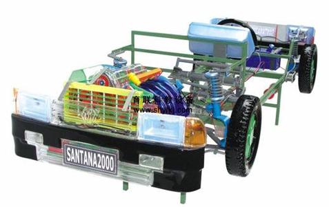 本品選用透明有機(jī)玻璃制作,內(nèi)中部件均以硬質(zhì)塑料料加工,用 螺絲固定在金屬高溫烘漆而成的車架上。各總成部分都以壓模成形加 工,代替過去膠粘合的方法,使產(chǎn)品在強(qiáng)度上有很大提高。發(fā)動(dòng)機(jī)總成用電機(jī)驅(qū)動(dòng),在油門處設(shè)有調(diào)速裝置,能演示發(fā)動(dòng)機(jī)轉(zhuǎn)速高低。離合器分離明顯,操縱靈活,離合器外殼整體壓模而成,變速箱和各檔齒輪用各種顏色表示,換檔靈活,手制動(dòng)美觀。后橋外形壓模而成,內(nèi)中主減速、差速轉(zhuǎn)動(dòng)自如,輪轂剎蹄壓模成型,剎蹄可調(diào)節(jié),前橋輪鼓可調(diào)整,轉(zhuǎn)向裝置以及電瓶、油箱、水箱,制動(dòng)管路分布清楚一目了然。電路采用對插件前后分布,燈架、風(fēng)窗、儀表板、后燈架用透明有機(jī)玻璃壓模成整體美觀逼真。