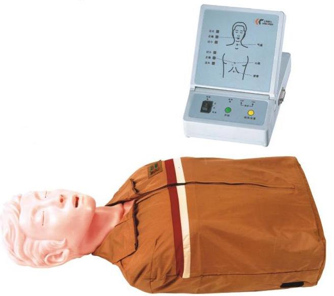 心肺復(fù)蘇,國際代稱CPR。在生活中,健康人由于心臟驟停(如觸電、溺水、高空作業(yè)事故、交通事故、旅游意外、心臟疾病、心肌梗塞、自然災(zāi)害、意外事故等所造成的心臟驟停),而必須采取胸外按壓、人工口鼻呼吸、心內(nèi)注射、氣道放開等搶救過程。使病人追短時(shí)間內(nèi)得救。在搶救過程中胸外按壓位置,按壓強(qiáng)度是否正確,人工呼吸吹入的吹氣量是否足夠等規(guī)范動(dòng)作是否正確,是搶救病人是否成功的關(guān)健。因此,在系列搶救過程中,必須要掌握心肺復(fù)蘇技術(shù)。模擬胸外按壓、人工呼吸、心內(nèi)注射、頸動(dòng)脈模擬搏動(dòng)、瞳孔由一只散大與一只縮小的比較認(rèn)識(shí),達(dá)到掌握操作訓(xùn)練心肺復(fù)蘇術(shù)的基本要求。對(duì)操作正確與否,有光電信號(hào)顯示、數(shù)碼顯示等功能,它是訓(xùn)練搶救人員進(jìn)行心肺急救技術(shù)訓(xùn)練的要求的模擬機(jī)。